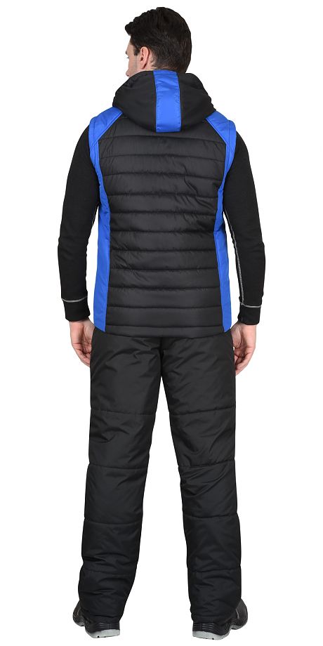 Жилет УРБАН утепленный с капюшоном черный с васильковым