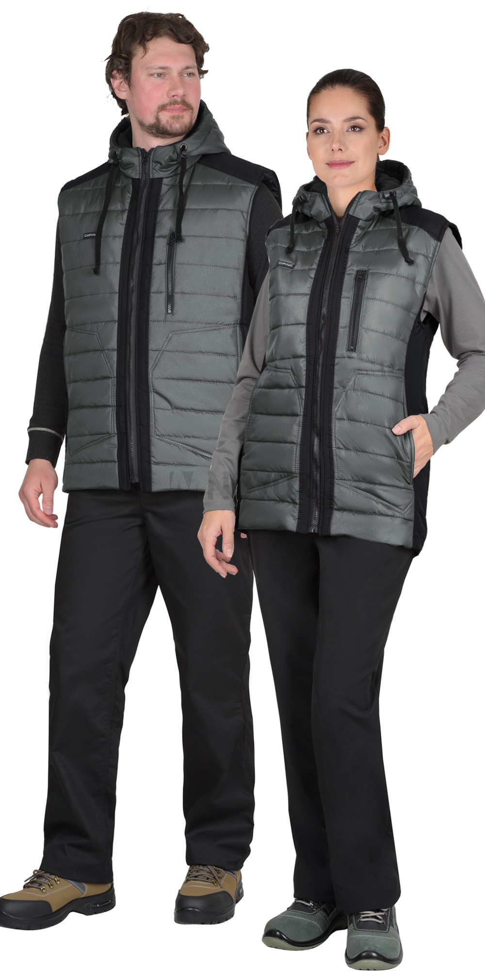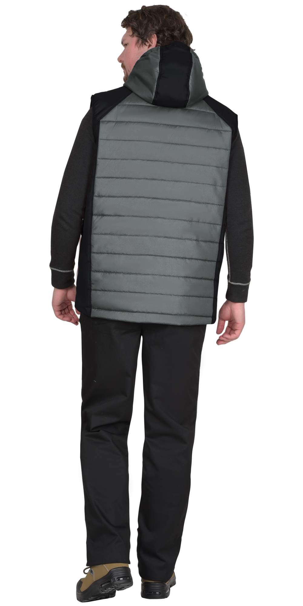 Жилет УРБАН утепленный с капюшоном серый с черным