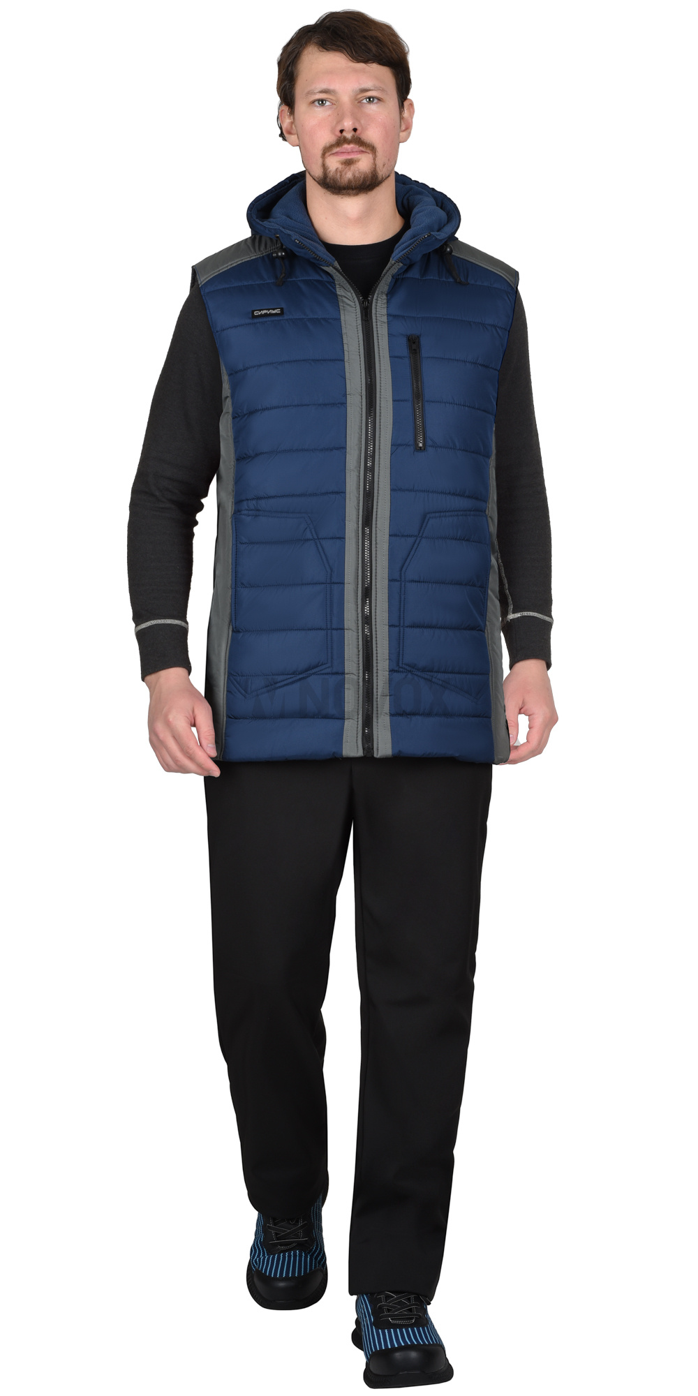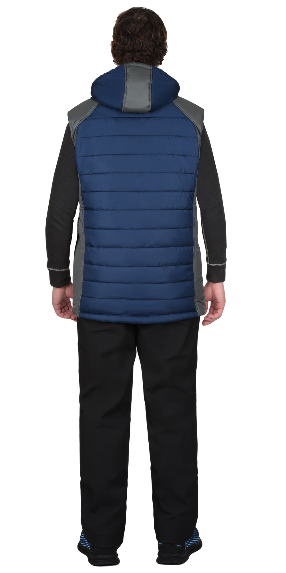 Жилет УРБАН утепленный с капюшоном синий с серым