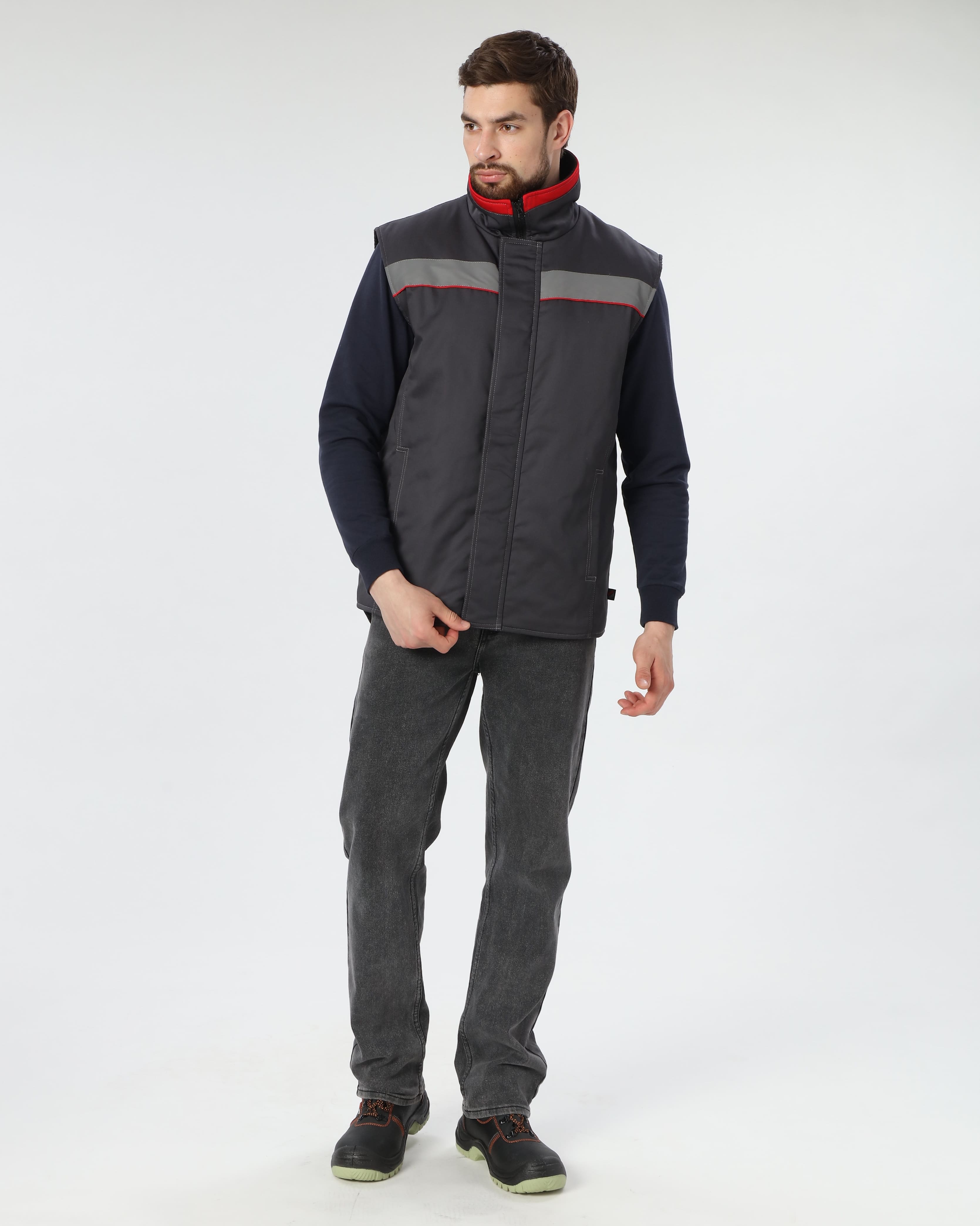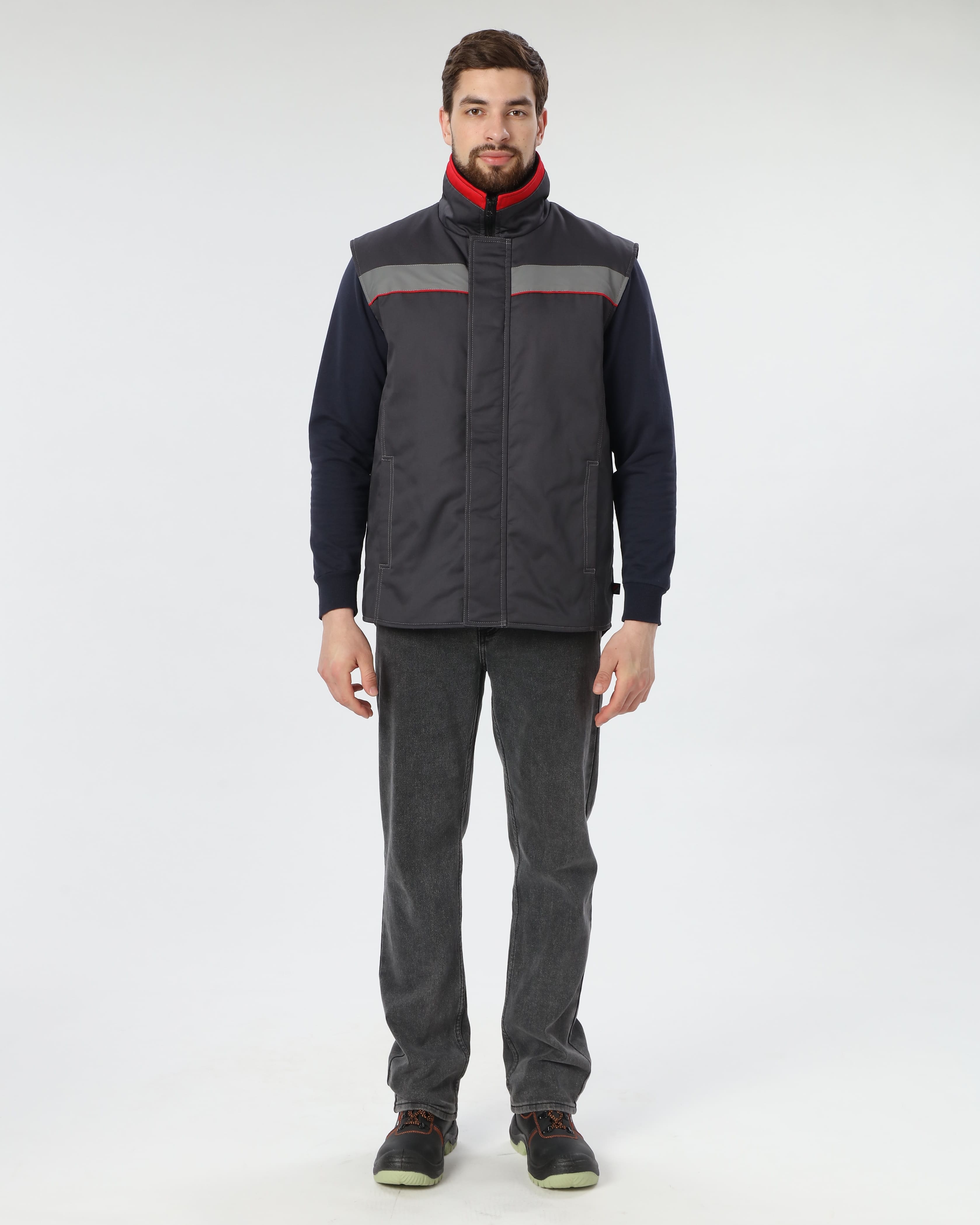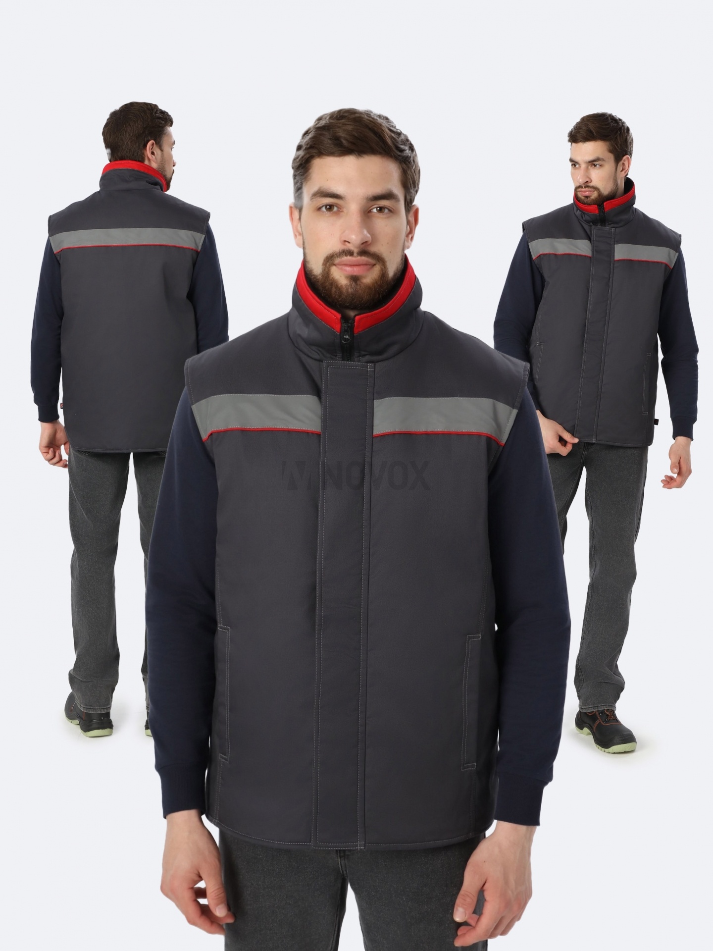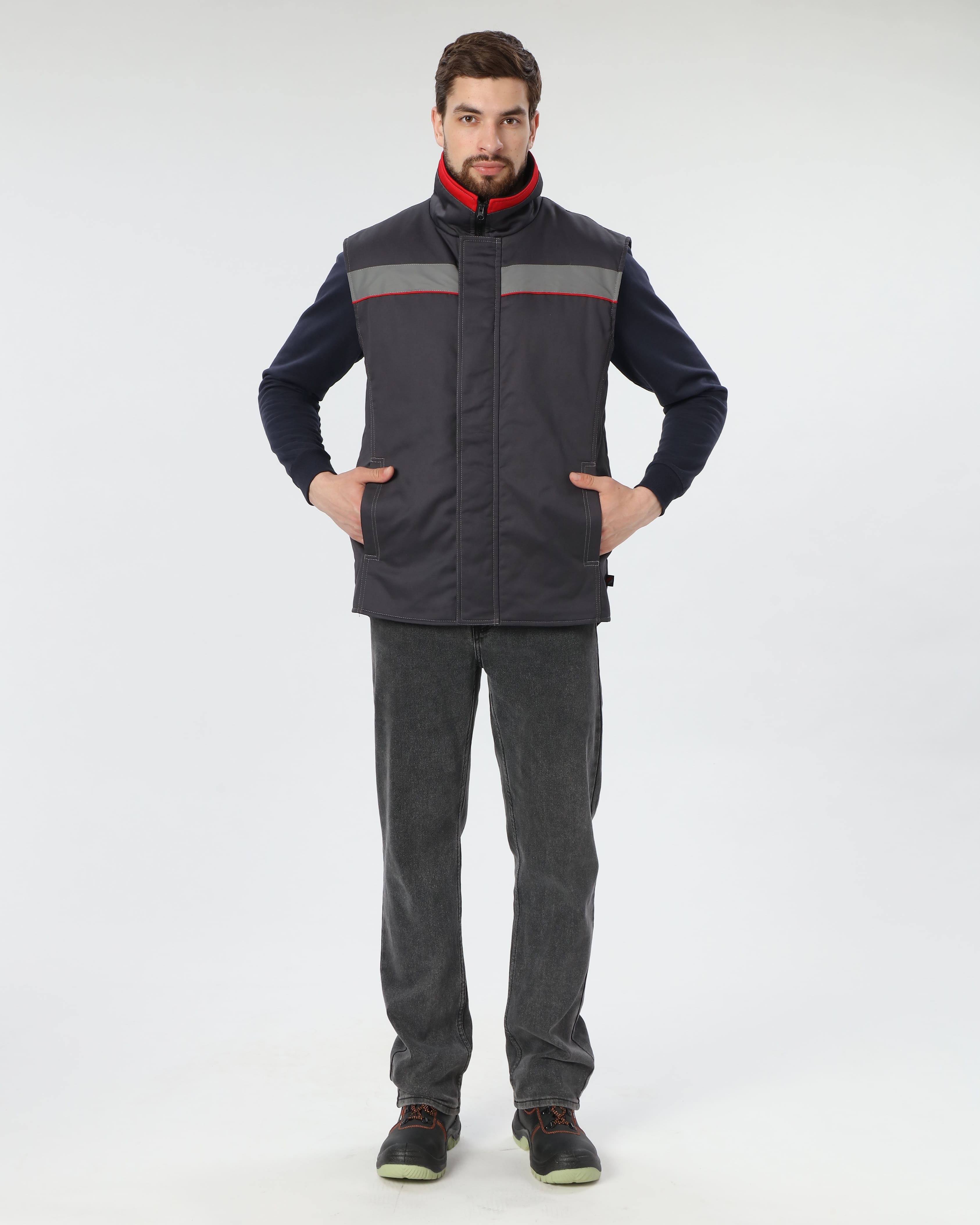 Жилет утепленный Грей (тк.Балтекс,210), т.серый/красный