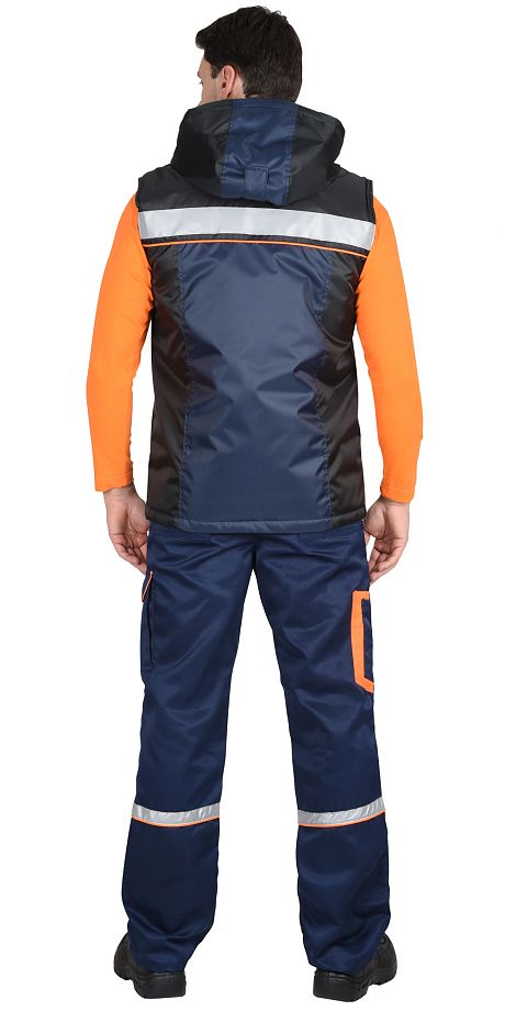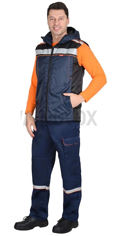 Жилет утепленный "ПРАКТИК" синий с черным, с капюшоном