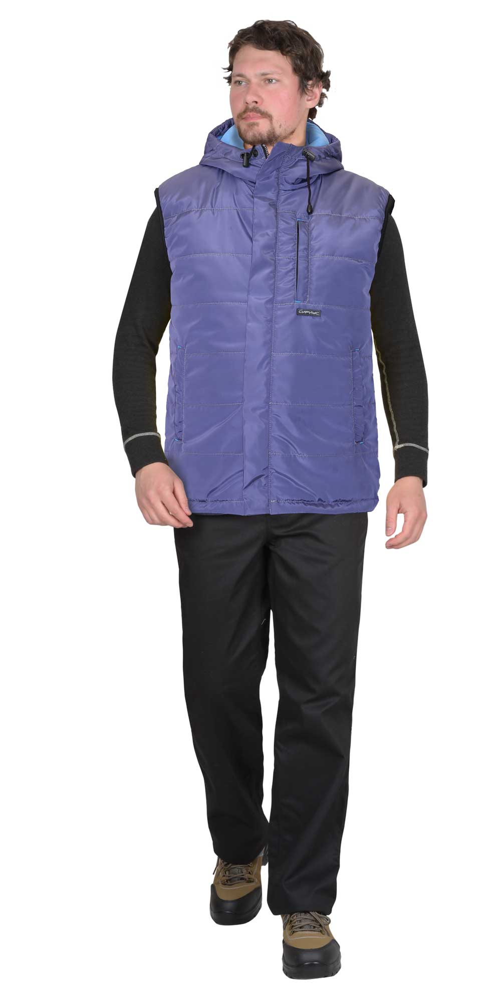 Жилет утепленный с капюшоном ЗОДИАК индиго (на подкладке флис голубой)