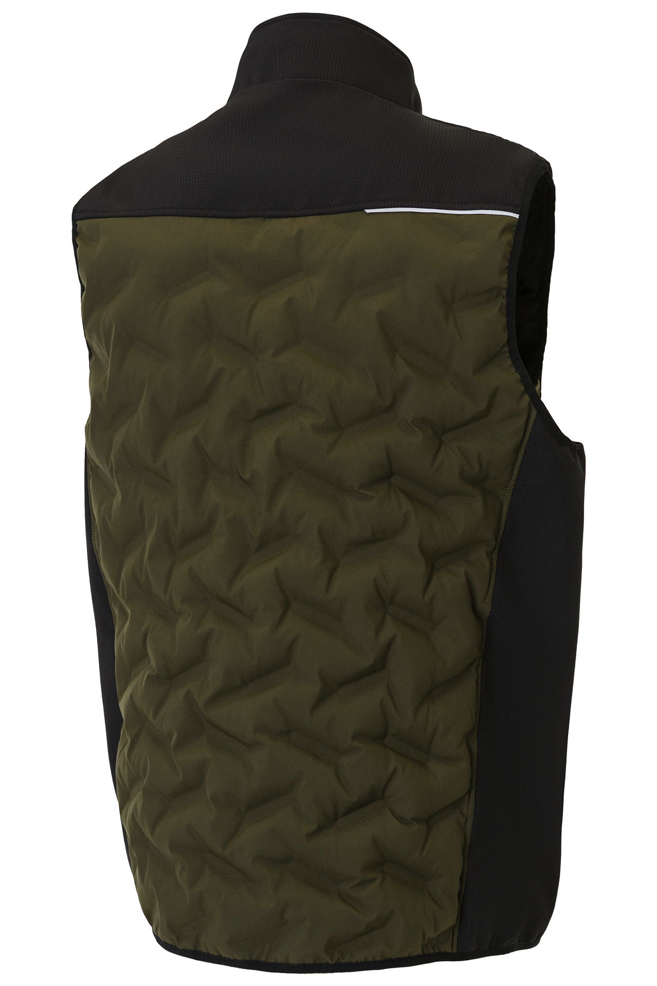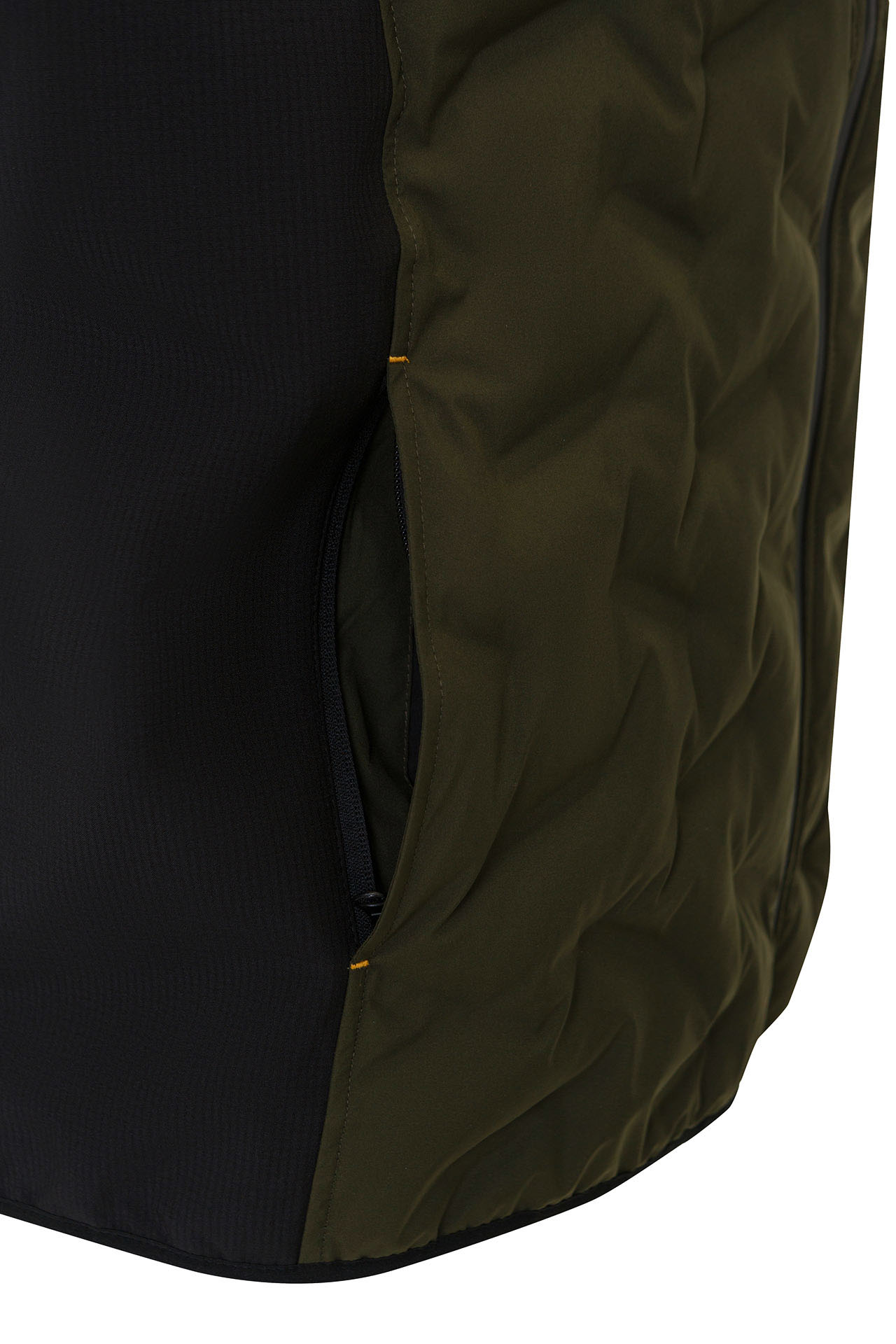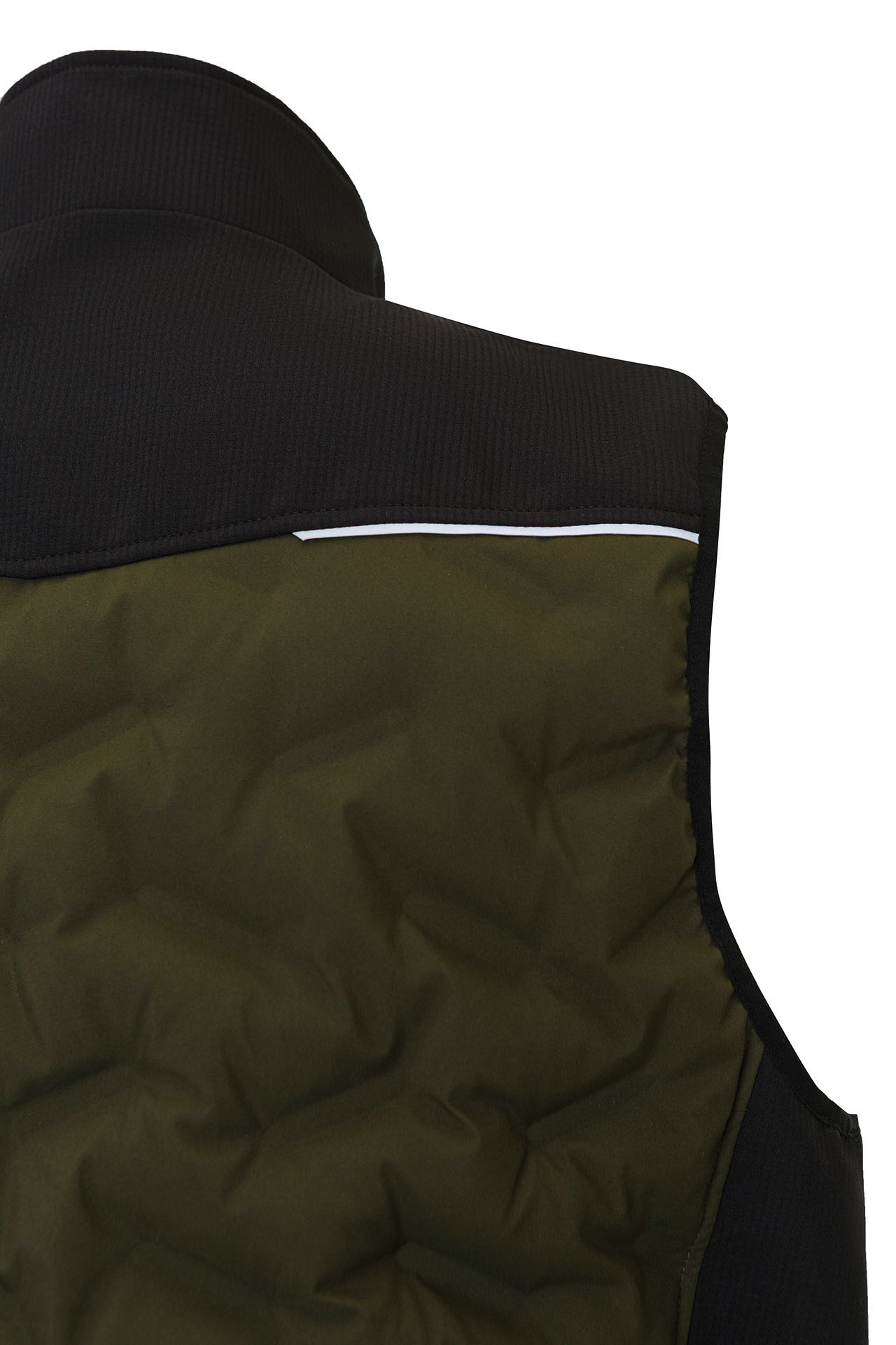 Жилет выполнен с использованием термостёжки, благодаря чему не происходит миграции волокон утеплителя